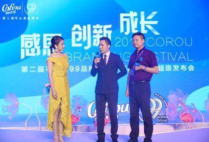 启动仪式环节,主持人伊一邀请曹振雷主任、陈少林董事长、卢道平营销总监等9位领导上台共同启动第二届可心柔9.9品牌节的序幕。
